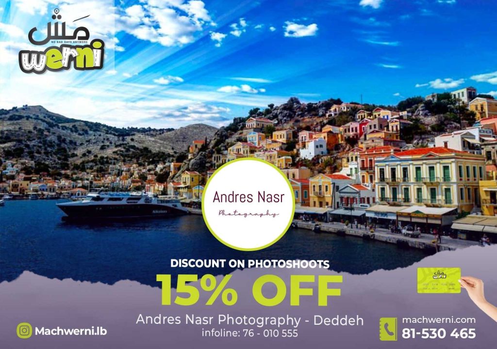 15% OFF on Photoshoots Andres nasr photography- Deddeh infoline: 76010555